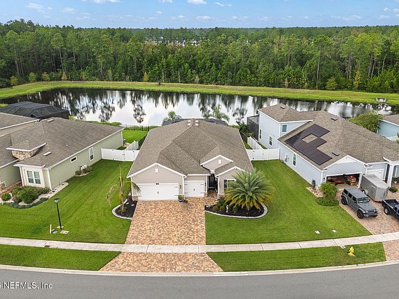 OPEN HOUSE: Oct 4th from 11-2pm Wake up to tranquil water views and unwind in your own backyard oasis! This immaculate 2019-built, single-story home offers 4 bedrooms, 3 baths, and 2,268 sqft of thoughtfully designed living space. Enjoy a sparkling saltwater heated pool, spacious 3-car epoxy-coated garage, and a beautifully landscaped yard that frames the serene waterfront setting. The open-concept interior features an elegant kitchen with quartz countertops, stainless steel appliances, striking backsplash, and 42'' cabinetry. Tile flooring flows throughout the main living areas for a clean, modern look. All furniture is also for sale—make an offer and just bring your clothes, this home is truly move-in ready! Located in the sought-after Twin Creeks community with top-rated St. Johns County schools and energy-efficient features, this home blends comfort, style, and location perfectly.
