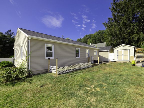 Don't miss this rare opportunity to own a charming, move-in-ready home located in a quiet, cozy neighborhood. This well-maintained 1,785 sq. ft. ranch home features three bedrooms, 1.5 bathrooms, and hardwood floors throughout, along with a spacious finished lower level. As you enter, you'll be greeted by a warm and inviting family room with views into the generous dining area. The kitchen is both practical and stylish, offering ample prep space, plenty of storage, and new stainless-steel appliances. The finished breezeway provides a perfect entry point from the driveway, garage, or backyard. Down the hall, you'll find three sizable bedrooms and a remodeled full bathroom. The finished basement offers versatility with a large multi-purpose room that can serve as a fourth bedroom, home office, or playroom. It includes storage cabinets, a new refrigerator, a half-bath, a laundry area, and additional storage in the unfinished sections. Outside, enjoy the lovely front yard and a recently fenced-in backyard, which features both a storage shed and a work shed. The property boasts a new roof, all-new stainless steel appliances, a new washer and dryer, new PVC fencing, remodeled bathrooms, and newer windows. It is connected to the city's sewer and water systems and is heated with oil. Conveniently located near highways, shopping, restaurants, medical facilities, schools, walking trails, parks, and more, this exceptional home is now available. Schedule a private viewing with me today