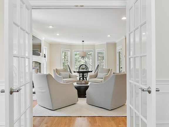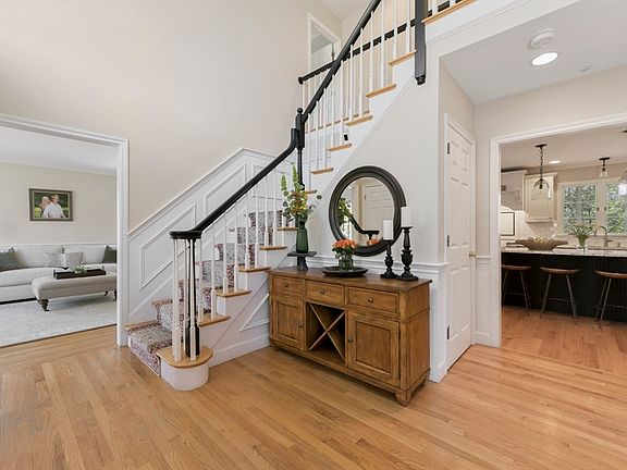 Nestled on a tranquil cul-de-sac in the prestigious Jerad Place neighborhood, this splendid 4 bedroom, 4 ½ bath residence w/ heated pool, is enveloped by nature. Enter grand, double-height foyer, to elegant living room, family room w/ fireplace. Renovated gourmet kitchen, w/ five-burner gas stove, double ovens, bespoke white cabinetry, and polished granite countertops, plus screened porch and separate dining room for hosting gatherings. Great room with H/W floors, Palladian windows, office area, and full guest suite. Upper floor luxurious primary bedroom suite, w/dual walk-in closets, renovated spa-like bathroom, and two additional bedrooms and a full bathroom with double sinks. Lower level designed for entertaining, with fireplace, game tables, exercise room, home office, guest bedroom, full bath and direct access to verdant fenced pool/patio garden. Two-car garage and nearly an acre of land, this home epitomizes the perfect harmony of hospitality and seclusion.