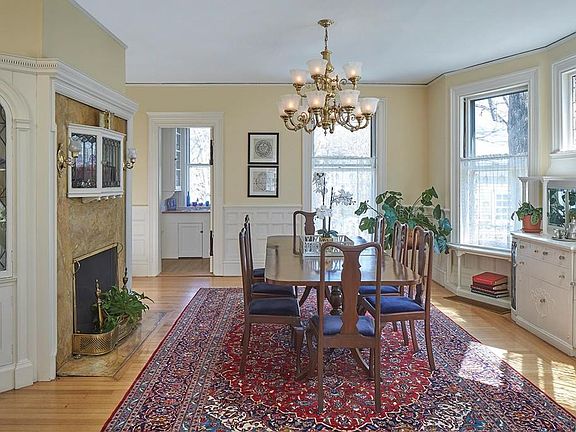 Located on one of Newton Centre's most desired tree-lined side streets, this grand 1897 Victorian home offers gorgeous original detail, tall ceilings, and sun-filled well proportioned rooms. Eat-in kitchen has a Subzero refrigerator, island with breakfast bar, small office area, butler's pantry, mudroom and sliding doors that lead to a deck and the yard. The living and dining rooms have fine built-ins, and marble faced fireplaces. Also on this level is a family room and half bathroom. 2nd floor has a grand hallway with a beautifully sun-lit sitting area. There are four large corner bedrooms, one of which is a master with fireplace and original marble shower. The 2nd bathroom on this level has an original magnificent soaking tub. The 3rd floor offers a playroom, three more bedrooms and a full bathroom. There are 2 separate HVAC systems and updated electrical. Basement is unfinished with tall ceilings. Two blocks to Newton Centre shops, MBTA green line, and school. Fabulous!