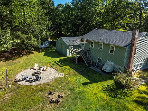 Charming Raised Ranch with two car garage on Over 2 Acres! This well-maintained home offers 3 bedrooms, 1 bathroom, and inviting living spaces on both levels. The updated eat-in kitchen boasts a spacious butcher block island, perfect for cooking and gathering. Step outside to a private backyard with a deck featuring built-in seating and a circular fire pit—ideal for entertaining or relaxing evenings under the stars. Additional features include a generator hook-up, heat pump for efficient heating/cooling and a pellet stove for cozy winters. Two sheds provide plenty of extra storage.