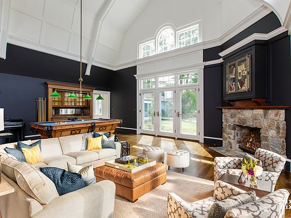 This private seven-acre estate's identity resides in its magnificent vistas of sunsets, dramatic clouds formations, the undulating hills of CT and NY State and the glow that bounces off LI Sound and the Manhattan skyline. Artists and architects will tell you it is all about the light and the views. This residence maximizes both throughout the house with its open floor plan, soaring ceilings, oversized windows and doors, terraces and strategically placed balconies. Gracious shingle style home custom designed by Louise Brooks and built by Hobbs Inc. features 5 bedrooms, 5 full baths, 4 fireplaces, coffered ceilings and elegant millwork, elevator, indoor and outdoor pools, exercise room, wine cellar and more... Own the keys to one of the most remarkable and treasured homes in New Canaan.