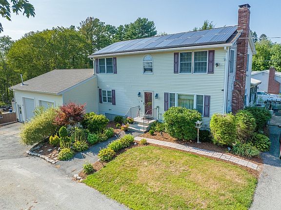 Located in the town of Whitman, this spacious colonial home presents a unique opportunity to establish roots in a desirable location. The property boasts versatile living areas that cater to various needs. It features 5 bedrooms, including 1 conveniently located on the 1st floor, along with 2 full bathrooms—1 equipped with a soothing Jacuzzi tub. The well-appointed kitchen is bright and spacious, seamlessly leading to a sunroom that enhances the home's living space. The basement offers a cozy family room heated by a wood stove, in addition to ample storage for all your essentials. The impressive 36x36 garage features a 14-foot ceiling, propane heater, mini-split for both a/c & heat, & cable hookup, making it ideal for vehicles, work or hobbies. A 20x14 garage with electricity provides further utility. Set on a generous 3.7-acre lot, there is opportunity to enjoy the outdoors, whether you're relaxing by the pool, lounging on the patio under the pergola or enjoying an evening by a fire.