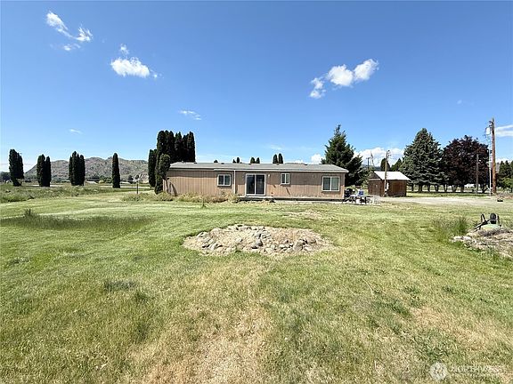 OMAK - Nearly 1 acre 1568sqft 3 bedroom/1.75 bath Manufactured Home w/OID Irrigation. High ceilings, ceiling fans, living room, dining room, kitchen w/breakfast bar, plenty of cabinets for storage, dining room, mudroom w/utilities including washer & dryer, primary bedroom w/three quarter bath en-suite, office/bonus room, two additional bedrooms on opposite side of home & full bathroom. All appliances stay. Beautiful views from the flats! Close proximity to downtown Omak - 5-minute drive. Double pane windows. Outbuilding - shed for storage. Heat pump. Septic. Community Water - Domestic. $225,000 MLS-2365267/H-3673
