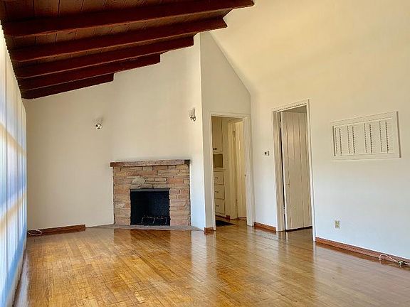 JUST CHARMING!! This cute house offers hardwood floors throughout, high wood beam ceilings, a cozy brick fireplace, a separate den or office can be used as a third bedroom, washer/dryer hook-ups, private patio and yard, 1 car garage, close to shops and restaurants and not far from the beach!! Tenant Responsible For Gas, Electricity, Water and Trash