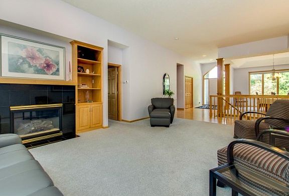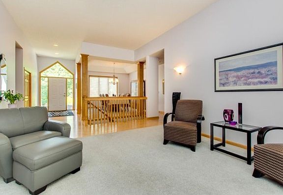 Priced below market per square foot. Take advantage of a relocation on this custom built Rambler in Moundsview School District. Over 4300 finished square feet in a thoughtfully designed 5 bedroom with open floor plan. Features include 3 bedrooms on the main level, master suite with jacuzzi, Jack & Jill bath, sun room, lockers, walkout lower level, wet bar, theatre, oversized closets throughout, 4 car total man cave garage with room for toys, workshop and more. Immediate occupancy possible.