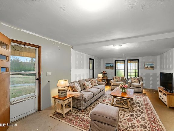 Just in time for your winter project, this three-bedroom, one-bath farmhouse sits on a half-acre lot and offers tons of potential. Enjoy a half wraparound porch and a total of 1,747 sq ft—including 1,224 sq ft on the main level and 523 sq ft upstairs.