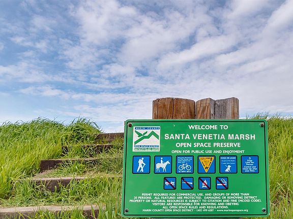 Spacious 1 Level 1711 sq ft w vaulted ceilings 100' from 33 acre Open Space Preserve. New paint inside/out & carpet. Originally 4BR, 2 combined for one spacious bedroom. Huge Family room. Level yard with roses & landscaping that will be blooming in a month. Remodeled bath. Viking stove for the serious cook.Dual pane windows. Santa Venetia is one of Marin's hidden secrets-close to China Camp, McNears Beach, MC Farmers Market, open space & the Bay