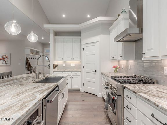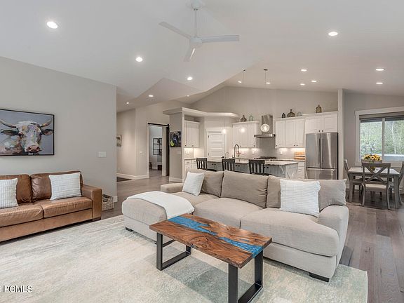 Located on a full acre at the edge of the Uinta National Forest, this stunning Modern Farmhouse offers privacy, space, and exceptional mountain living. Backed by open space and a pristine hillside, the property is just a short walk from Beaver Creek. The home features a vaulted great room, a light-filled kitchen with a large island, and an open layout connecting the dining and living areas—all overlooking a beautifully landscaped backyard with a covered deck, patio, and sparkling pool. A built-in dog door and pet entry add thoughtful convenience. Enjoy main-level living with a spacious primary suite, laundry/mudroom, office, and two additional bedrooms with a shared bath. A large, finished flex space above the garage—with its own bathroom—is perfect for a guest suite, studio, or game room. Additional highlights include an oversized 2-car garage with EV charger, detached 1-car garage, and no HOA restrictions. Schools, the Kamas Aquatic Center, shops, dining, and world-class skiing in Park City are all nearby. Endless trails, reservoirs, and outdoor adventures await just minutes from your door.