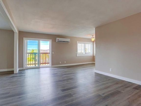 Newly Remodeled 2 Bedroom Unit in a Triplex with Mountain Views! Charming two bedroom unit located in a small triplex near Grand Ave in Escondido! The home has upgrades throughout with newer paint, dual pane windows, wood-look plank vinyl flooring, updated fixtures, and plantation shutters. The kitchen has been remodeled with stainless steel appliances, new cabinetry, fixtures, and stylish quartz countertops. In addition to the new kitchen, both bathrooms have been upgraded with custom tile, quartz countertops, and new fixtures. Both bedrooms are spacious with ample closet space for storage. A washer and dryer are included and located in a laundry room off of the kitchen. The home is very private and has a balcony facing beautiful mountain views! The layout is open and spacious with natural light throughout and an energy efficient mini split heating and air system! This is the top level unit located on the main street with an extended driveway, carport parking steps from the front door with room for three vehicles and outdoor storage available. Call today to schedule your showing! No pets preferred Tenant pays SDG&E, Cable, & Internet Owner pays Water, Sewer, & Trash One year lease minimum Available for move in after 1/16/22