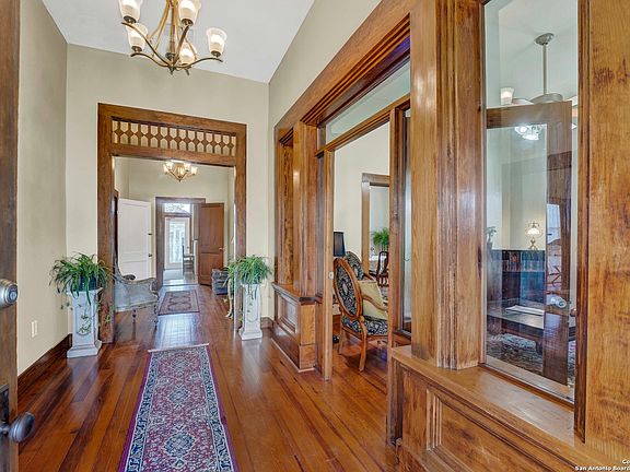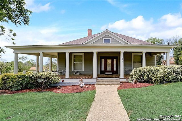 Located in the charming Historic Garden District of Downtown Kerrville this beautifully restored home currently a Short Term Rental has its own State of Texas Historical Marker, a potential 1/1 Guest House, is zoned Residential Transition and can be used for either Residential or Commercial purposes. Beautifully maintained home has a large wrap around front porch, wood floors, high ceilings, large remodeled kitchen, formal dining and living rooms, 3 bedrooms and 2 baths. Potential for guest house or extra rental income. Large 0.615 Acres lot and off-street parking. Located on the upper end of Earl Garrett with easy walking distance to all the downtown shops, restaurants and businesses, only minutes to Fredericksburg TX Wine Country. Most furnishings convey.