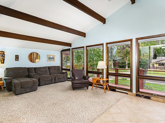 Oasis. Surround yourself with light and space in the masterful blending of interior and exterior environments of expansive walls of glass, floor to ceiling brick fireplaces, a wrap around deck with wide eaves, vaulted and beamed ceilings, two patios, a separate deck, and a magical, urban retreat created within the spectacular, detached, cedar, screened porch. Note the spacious four bedroom home featuring an office, an updated kitchen with granite countertops, glass tile backsplash, and a breakfast bar with a highly polished, wood slab top, an entry with a floor to ceiling wood wall, updated baths, tile flooring, recessed lights, ceiling fans, and abundant storage. Enjoy the in-town, outdoor oasis with space for family activities, entertaining, hobbies, solitude, and privacy. Treasure the ideal east side location close to the golf course, Memorial Field, Sibley Swale Park, and Spring Creek School.