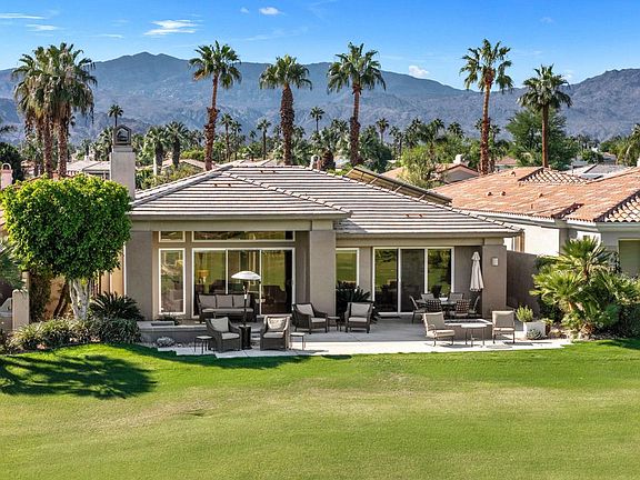 This beautifully updated Bougainvillea 2 floor plan offers the perfect blend of comfort and style in Indian Ridge Country Club. Step through the private courtyard with pavers and desert landscaping into an inviting open-concept home filled with natural light. The spacious great room features tile flooring throughout and large windows framing breathtaking views of the 3rd hole of the Grove Course and the surrounding mountains. The updated kitchen boasts stainless steel appliances, sleek new countertops, and upgraded cabinetry with pull-outs for easy organization. The expanded back patio is an entertainer's dream, complete with a spa, fire pit, and plenty of space to relax and enjoy the stunning desert sunsets. The primary suite is generous in size with a beautifully updated bathroom, while two additional guest bedrooms--each with their own en-suite bath--offer comfort and privacy for friends and family. This move-in-ready home captures the essence of desert living with stylish updates, bright open spaces, and unbeatable views. This home also has the benefit of owned solar. Offered furnished per inventory list. Golf or Club Membership available.
