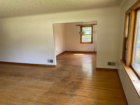 Hardwood floors run throughout the main living spaces, creating an inviting and warm ambiance. The open layout includes a dining room, perfect for hosting gatherings and special occasions.