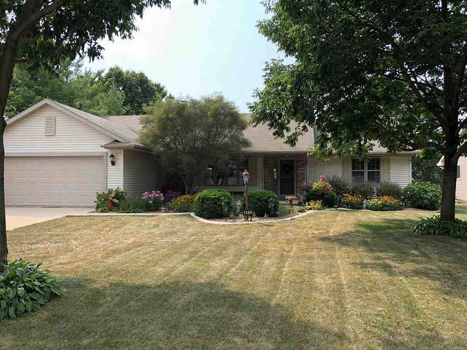 Very well maintained. Split Bedroom Design. Large Master bedroom with tray ceiling, walk in closet & master bathroom. Vaulted ceilings with Gas Fireplace in Living Room area. Quartz stone kitchen countertops. 1st floor laundry. Concrete curbing, Covered Deck and New flooring. Custom speakers in main living area and office, central vac and sprinkler system too !
