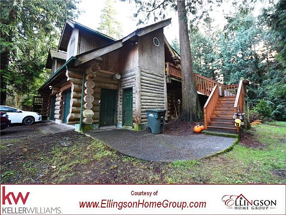 A wooded backdrop highlights this 2 story log home with full basement amid rural-area charm on 5 acres. This large home has 6 bedrooms, 4 baths, main level master suite, gourmet kitchen with nook, cozy living room and large family room. There are also french doors, wood stove, radiant floor heat, skylights, stainless appliances, granite counters, center island, 3-car garage, barn and perimeter fence. Exterior entry to 2 bed, 1 bath upstairs apartment. Bring your hammer and finishing touches to complete this custom home.