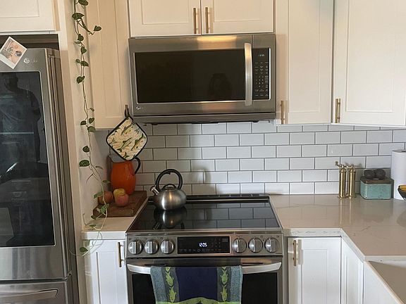 Home features all new appliances (including furnace and hot water heater), marble tile shower, subway tiled kitchen backslash, hardwood flooring, off street parking and an on-site laundry as well as a private storage closet.