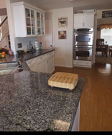Over 3800 square feet . It is a 5 bedroom and 3 bathrooms, but has a large room with it's own entrance from outside and also has a door from inside house, so would make a great mother-in-law room.This room can also be a great game room because it is big enough for a large pool table or it could make a great theater room. It has endless possibilities. Home has 4 bedrooms & one bathroom with shower tub upstairs. Downstairs is the master bedroom with a large bathroom that has a walk-in shower and a large tub, also has a walk-in closet. It has a nice size eat in kitchen with an island that will easily fit 4 bar stools. Kitchen has all electric appliances, which includes a large 3 door refrigerator with freezer at bottom, a counter top cooktop an over the counter microwave, dishwasher ,and a double oven. It has a dining room and living room, walk-in pantry, laundry room with front load washer & dryer and a half bath . It has a front porch and a screened back porch. The water softener system and roof is less than 3 years old. Sea wall and dock less than 2 years old. It is on little crooked lake which is known for large bass. Seen by appointment only. Call [hidden information]