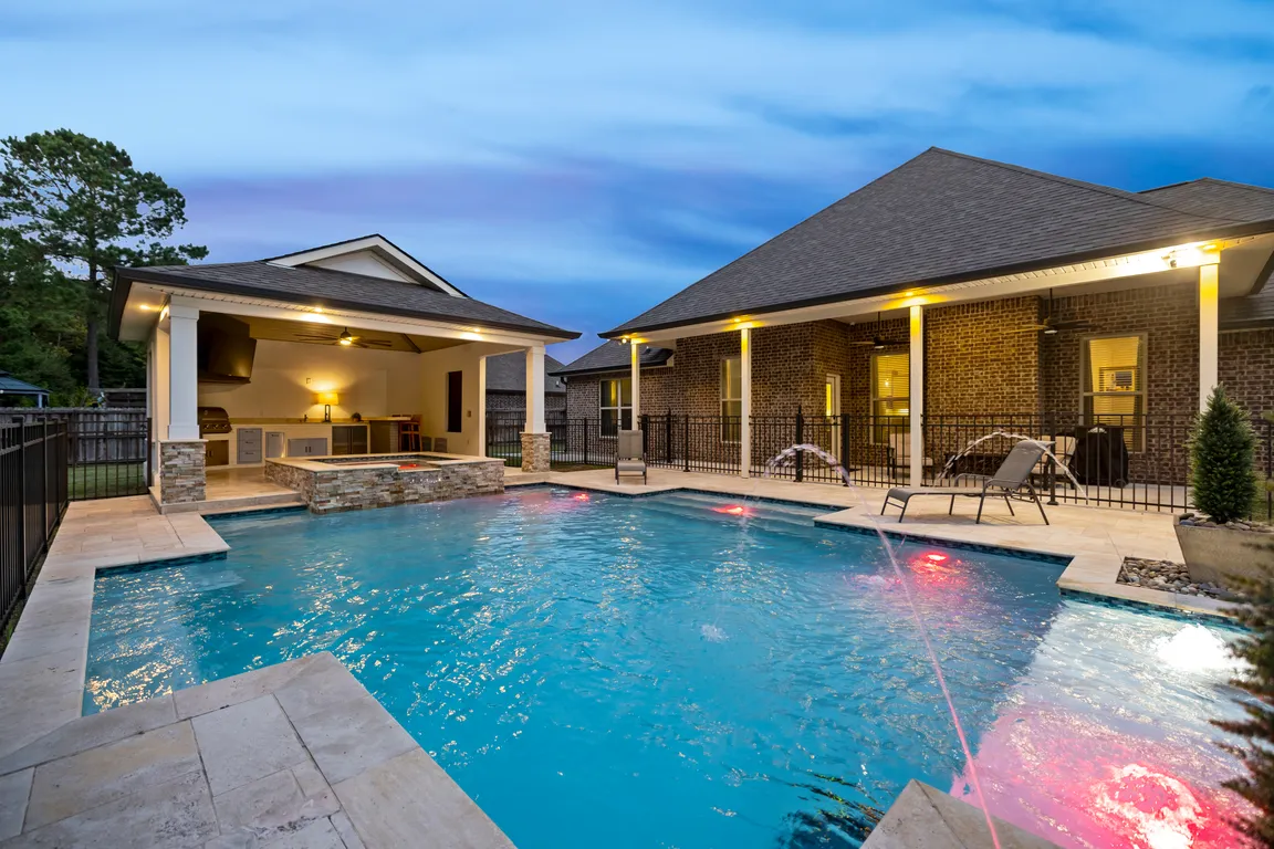 - Exterior features: Fence, Porch, Patio, Outdoor Kitchen