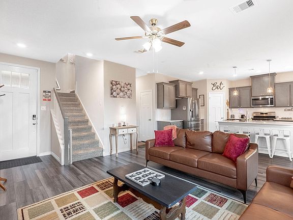 Exquisite D.R. Horton two-story home in the highly desirable Midtown Reserve of South College Station, just 5 minutes from Tower Point shopping, dining, medical facilities, and more! The main floor features an open and airy layout with living room, dining area, and gourmet kitchen filled with natural light, for entertaining. The primary suite on the main level offers a barn door, soaking tub, separate tiled shower, dual sinks, and a spacious walk-in closet. Upstairs you’ll find three additional bedrooms and a versatile flex room with full bath, for a possible game room, home office, or in-law suite. Step outside to a covered patio with ceiling fan and a large backyard for gatherings or quiet evenings outdoors. Midtown Reserve offers parks, walking trails, and recreational areas, providing a community-focused lifestyle. This home is a must-see!
