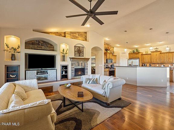 Breathtaking views surround this gorgeous custom home in Creekside!This 4-bedroom, 3-bath residence offers main-level living with a spacious 3-car garage, two fireplaces, and a wraparound front deck perfect for soaking in the scenery. The owner's suite features two large walk-in closets, while the kitchen shines with stainless steel appliances and a striking stone accent wall. A picture window in the dining area frames the endless views. Inside, you'll find newer carpet, hardwood, and tile flooring throughout. The lower level includes a versatile bedroom/office/den with its own fireplace, closet, and private entrance. Outside, enjoy a fenced backyard, large covered patio, and even the occasional deer visitor. Major updates include a new roof and exterior paint in 2021.