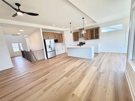 Live close to school and enjoy all your kids or grandkids activities. Enjoy the awesome Triumph Park, Northwest middle school and high school directly across the street in this NEW development in Waukee. Our STRATFORD plan has a welcoming entry with a 12-foot ceiling with a beautiful large window/chandelier making more natural light in the home. 5-bedroom ranch w over 2800 sqft finished. 9' ceilings on Main/Lower level. Laundry/mudroom from the garage with w lockers. Beautiful primary suite with Quartz counters & Biscotti and white cabinets throughout, center island & pantry in the kitchen open to a huge dining/sunroom with slider to covered deck. Popular LVP flooring in main living area. Huge lower-level family rm w 2nd fireplace w stone surround from mantle down, wet bar with quartz counter, 4th & 5th bedroom & full bath. Extra-large Daylight windows in this basement gives tons of natural light. Irrigation included in this home. Unbelievable upgrades in this home, call for list! Exterior of home is with LP smart siding. OFFERING ALLOWANCE FOR RATE BUYDOWN OR TOWARDS UPGRADES! Great new location!