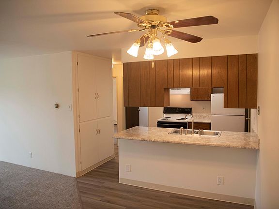 Renter is responsible for electric. Water, sewer, trash and heat are paid for. And we require a 12 month lease.