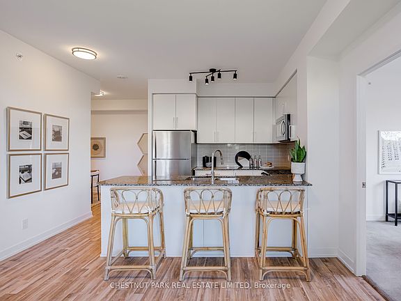 Experience upscale living in this modern and spacious 2-bedroom + den, 2-bathroom residence in Etobicoke's convenient Humberwood community. Encompassing over 1,000 sq. ft. of thoughtfully updated space, this bright condo features a desirable open-concept split plan layout, offering privacy between bedrooms while maintaining an airy flow. The gourmet kitchen is appointed with sleek stainless steel appliances and granite countertops, and the living area opens to coveted sweeping, unobstructed views of the lush Humber Arboretum - a rare blend of sophistication and tranquility. Enjoy sunsets and serenity from your expansive wraparound balcony with envious western exposure. The versatile den is ideal for a private office or spacious dining room, while premium conveniences include parking and a locker. Residents enjoy an array of upscale amenities, from the concierge to a stylish party room and lobby, as well as a well-appointed fitness centre, designed to complement a refined urban lifestyle. Perfectly positioned across from Woodbine Racetrack and the Great Canadian Casino, with Humber College North Campus just minutes away, the location balances vibrant energy with natural beauty. Effortless connectivity via Highway 427, GO transit and Toronto Pearson International Airport (YYZ) ensures exceptional convenience for both business and leisure travel. Nearby shopping, dining and everyday conveniences complete the picture of a dynamic and well-connected community.