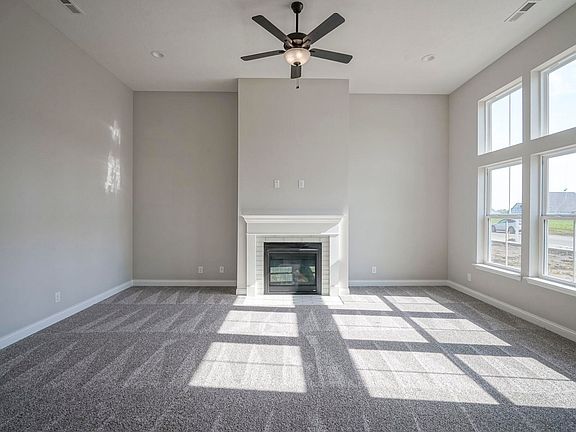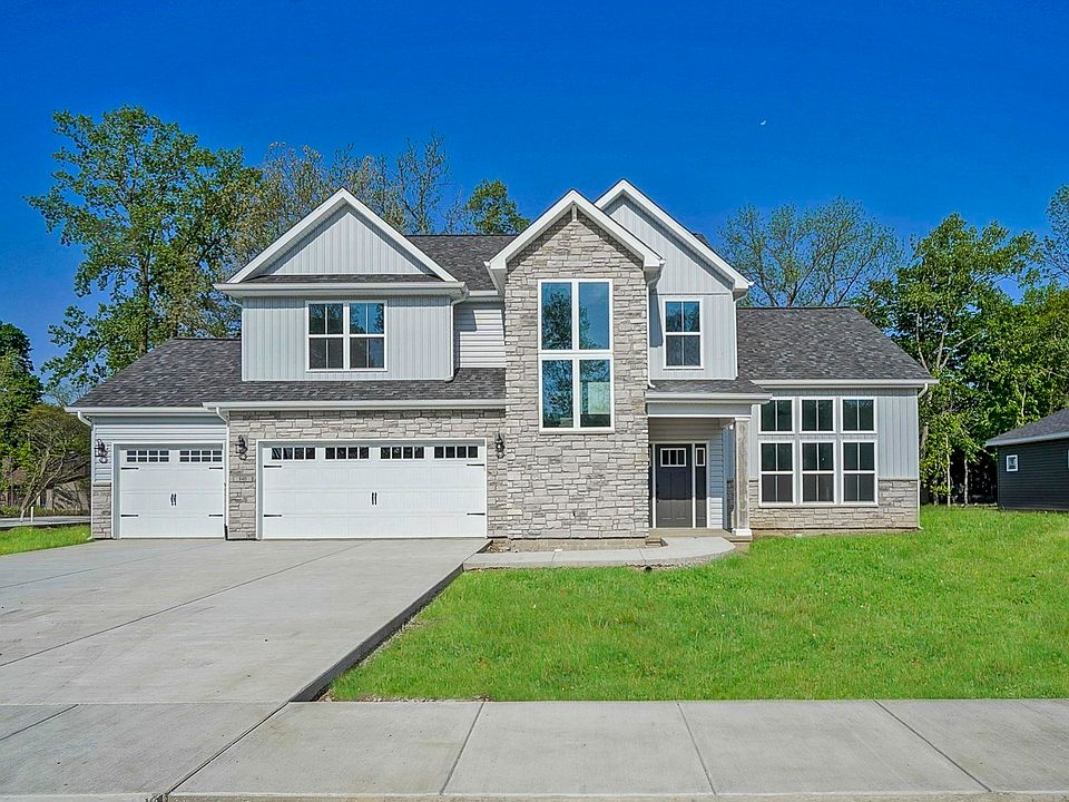 BRAND NEW by Majestic Homes – Spacious & Stylish Cumberland Floor Plan. Welcome to the newest phase of Frankfort’s Meadowbrook neighborhood, where quality construction meets thoughtful design in this beautifully crafted new home by Majestic Homes. Nestled on a generous 1/3 acre lot, the improved Cumberland floor plan offers nearly 2,700 square feet of well-planned living space with custom features throughout. The main level welcomes you with a bright Foyer that opens into a spacious Great Room featuring soaring 12-foot ceilings and expansive double-height windows that bring in abundant natural light. The well-appointed Kitchen includes a large island with bar seating, granite countertops, stainless steel appliances, tiled backsplash, under-cabinet lighting, custom cabinetry, and a pantry. The Owner’s Suite offers a private retreat with tray ceilings, a walk-in tiled shower, dual sink vanity, and a generous walk-in closet. A separate Laundry Room includes additional cabinetry and a convenient laundry chute. Upstairs, enjoy a massive 22x22 Rec/Bonus Room, three additional comfortable Bedrooms, and a second full Bath with a dual sink vanity—perfect for family and guests alike. Additional highlights include: 3-Car Garage, a 16x12 Covered Porch, Front Yard Irrigation, and water softener included. With its custom finishes, spacious layout, and convenient location, this home is a must-see. Contact us today to experience the Majestic Homes difference!
