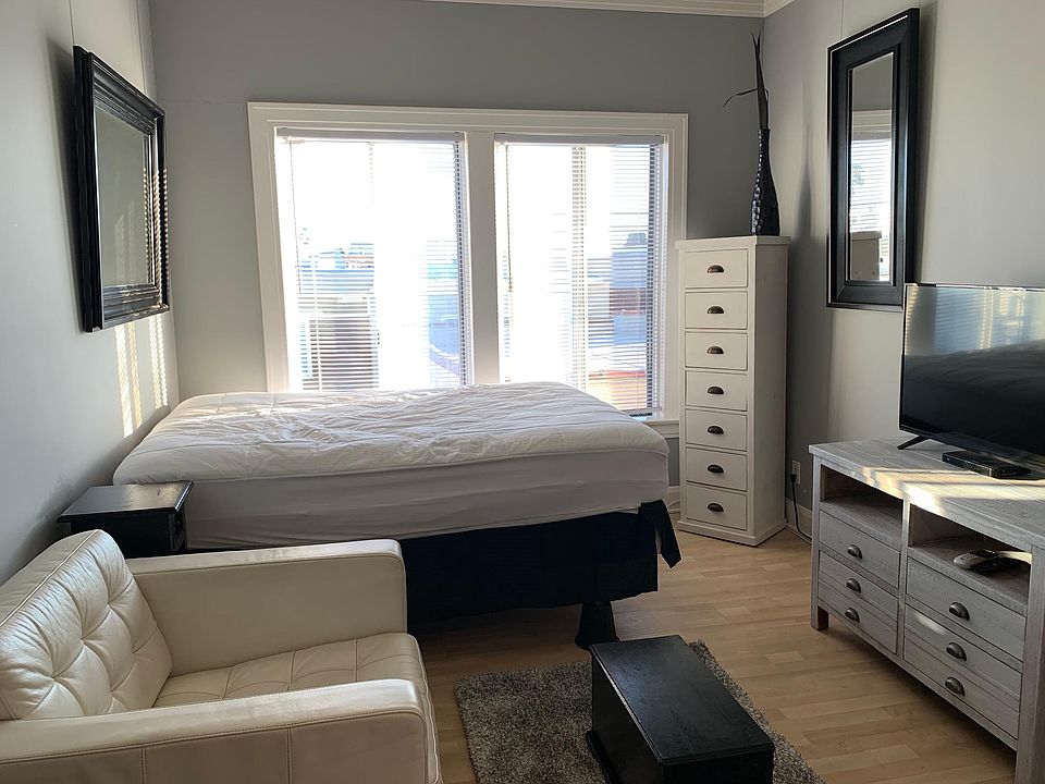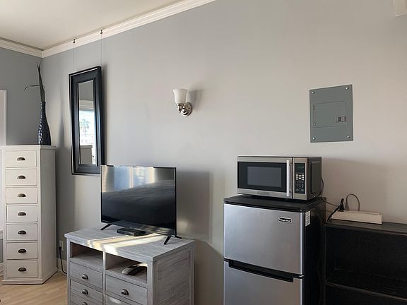 Unit has a full or queen size bed, nightstand, armchair, dresser, tv unit, space for storage under the elevated bed, build in high storage cubbies, separate in unit bathroom with shower and toilet, sink in the main room for your convenience, no kitchen counter but shoulder high refrigerator in main room, with microwave and toaster oven on top and a small storage shelf with basic dishes and silverware. Small compact beach studio in a great historical 1923 building on The Strand. Unique! Great building, great small studio unit in a historically renovated building. Ocean view from the unit. Ocean views from common areas. Nice professional tenants, quiet building, steps to the ocean, couple blocks to Pier with bars, restaurants, shops, etc.. walking distance to grocery stores, etc.. fully furnished for your convenience no pets allowed, allergy free building street parking with residential pass All bills paid, including wifi, hd direct tv services, gas, electric, water, trash. 1 bill all-in! 1 year lease, but other options available.