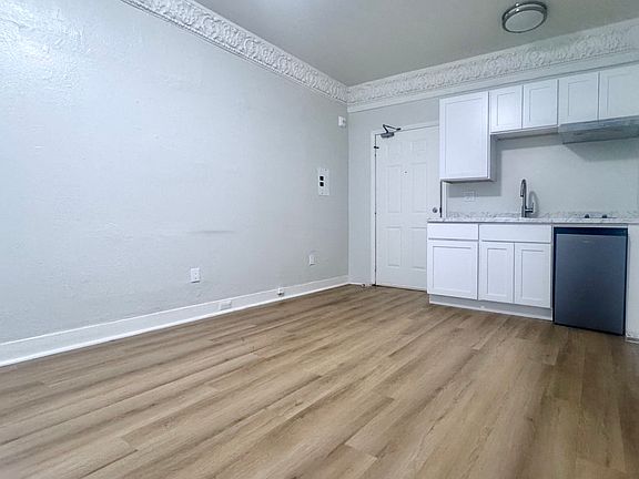 Located at 840 Van Ness Ave, San Francisco, CA 94109, this modern studio apartment offers a comfortable layout with hardwood floors throughout, a kitchenette equipped with stainless steel appliances and crisp white cabinetry, and a refreshed bathroom featuring a walk-in shower and a vanity with built-in storage. Enjoy easy access to everything the Civic Center neighborhood has to offer in this clean, contemporary space.