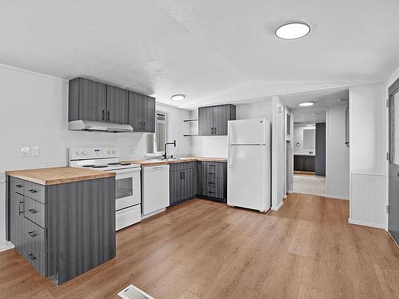 Welcome to your newly updated home in Pine Grove Manufactured Home Park in Cheney, WA! This 3-bedroom, 2-bath house has been remodeled with new fixtures, luxury vinyl plank flooring, carpet, and has been freshly painted inside & out. It also features a wheelchair ramp for easy access. Inside, you'll find a cozy living area and updated kitchen with butcher block countertops. Cheney is a great place to live, home to Eastern Washington University, offering lots of cultural and sporting events. Enjoy nearby parks, lakes, and hiking trails. Cheney has a strong community spirit with local events, farmers markets, and festivals, plus all the amenities you need close by. Additionally, Cheney is conveniently close to Spokane, providing even more shopping, dining, and entertainment options just a short drive away. Don't miss out on this updated home in a friendly community. Schedule a viewing today and make this house your new home!