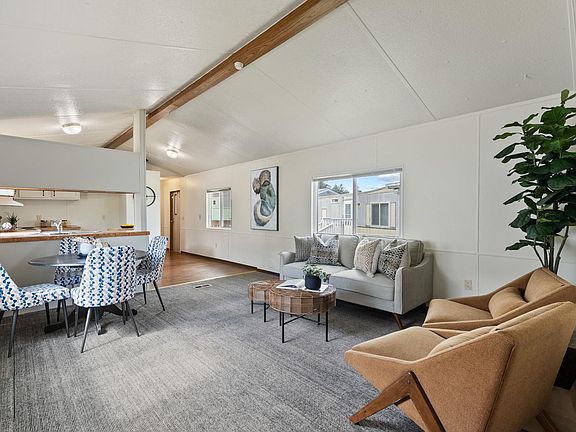 Great affordable living in this 1984 14x66 Medford by Fleetwood manufactured home on a leased lot located in Pine Grove MH Park. 2 Bedroom 2 bath, 924 square feet. Spacious master bedroom and master bath. Nice open floor plan and cathedral ceilings. New carpet in living room and bedrooms. All new plumbing, hot water heater and sealant on roof in 2020. Newer vinyl windows. Freshly painted interior and deck. Great location that is close to parks, schools and public transportation. Buyer must be approved by Park Management. Owner occupied buyers only park.
