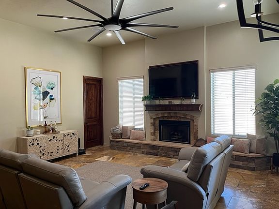 Discover comfort in this beautiful 3-bedroom floor plan highlighted by high ceilings, large 8' ceiling fan in spacious great room which flows effortlessly into the chef-inspired kitchen with granite counter tops, kitchen ware, utensils and Kitchen Aid appliances. This fully furnished home features large primary bedroom with jacuzzi in master bath, large laundry room with front load washer and dryer and three large WI-FI Smart tv's. Stepping outside to the back patio you will enjoy a built-in barbecue with a patio dining table and furniture. Home offers 2500 sq ft. living in a very quiet prime location inside Yuma city limits close to schools, stores and mile from Onvida Health Yuma Medical Center. All you need is your suitcases.