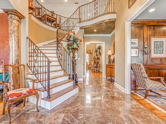 Stunning One-Owner Luxury Estate on 3 Acres in Windsor Park! Impeccably maintained and designed with over 5100 sq ft. Grand foyer opens to a formal dining room and richly paneled library/study. Primary suite on main with sitting area and huge custom closets plus a junior primary suite—perfect for multigenerational living. 2 story greatroom plus big family room each with fireplace- amazing entertaining home! Lovely kitchen with double ovens, built-in refrigerator. Slate, marble & nailed oak floors. All 4 bedrooms have ensuite baths/walk-in closets. 2 half baths for guests. Bonus with full bar. Huge expandable space. Oversized 3-car garage + detached 22×27 garage with 1/2 bath + expandable upper level ideal for guest/pool house. Multiple covered patios overlook manicured 3-acre lawn with breathtaking sunsets and deer views. Windsor Park—prestigious, peaceful, and perfectly located near I-40!