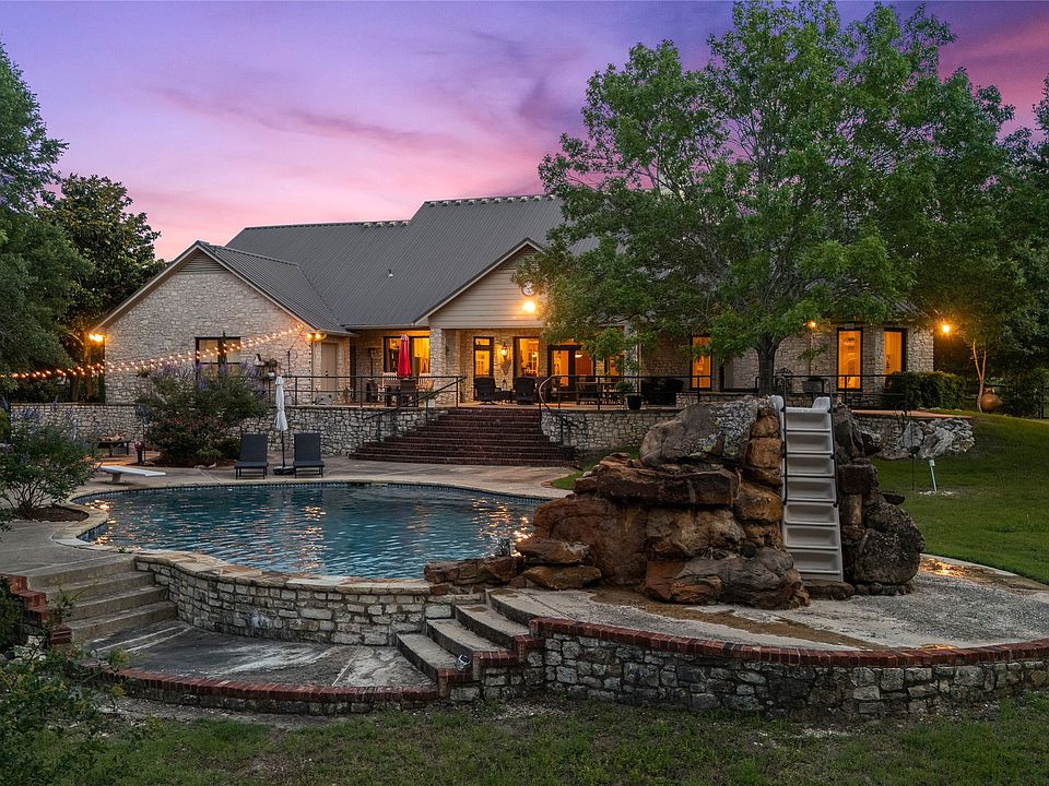 Designed for those who value privacy, space, and a setting that feels like an escape, 840 Winding Trail sits on a scenic 2.63-acre riverfront lot in the prestigious Three 17 River Oaks community. Mature trees and the gently flowing Bosque River create a peaceful, secluded backdrop—yet you're only minutes from dining, shopping, and everyday essentials. This is more than a home; it’s a place to slow down, entertain freely, and enjoy the kind of lifestyle that rarely comes available in Crawford. Inside, over 4,000 square feet of thoughtfully designed living space invites you to relax and entertain with ease. From the grand living room with its soaring fireplace to the sunlit dining spaces and flowing layout, this home was built for both connection and quiet moments. The kitchen’s semi-open configuration allows for effortless entertaining while keeping the culinary space discreetly tucked away. Brick flooring and crown molding add a sense of timeless elegance, while the expansive windows frame the scenic backyard views. The primary suite is its own private sanctuary, complete with fireplace, private access to the patio and hot tub, and a spa-like bath designed to start and end your days in comfort. A separate office or flex space, guest accommodations with private baths, and an upstairs game room offer flexibility for how you live. Step outside and the lifestyle expands—an elevated patio overlooks your personal resort, complete with saltwater pool, stone waterfall, slide, and diving board. A 32' x 44' insulated shop with power supports hobbies, storage, or business needs. For those seeking distinction, space, and a true sense of arrival, 840 Winding Trail is the property that delivers. Located in one of Central Texas' most coveted luxury communities, this is a rare opportunity to own a private estate that offers not just a beautiful home—but a lifestyle defined by comfort, elegance, and a lasting connection to nature.