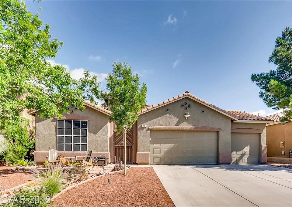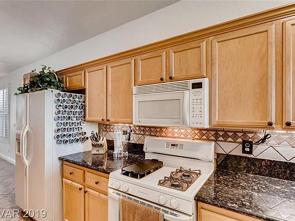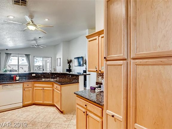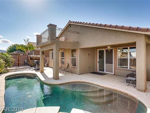 GORGEOUS 1 Story w/POOL & SPA great for entertaining. Open entryway w/vaulted ceiling, tile, and laminate wood thru out. Formal dining leading to spacious Kitchen ,includes: custom cabinets, granite counter & Breakfast bar. Family room w/ceiling fan. Master has WIC, dual sinks, shower & Roman tub. Plantation shutters and blinds. Options to put stairs on balcony for a breathe-taking Strip-view. 2 Covered patio for back and side yard