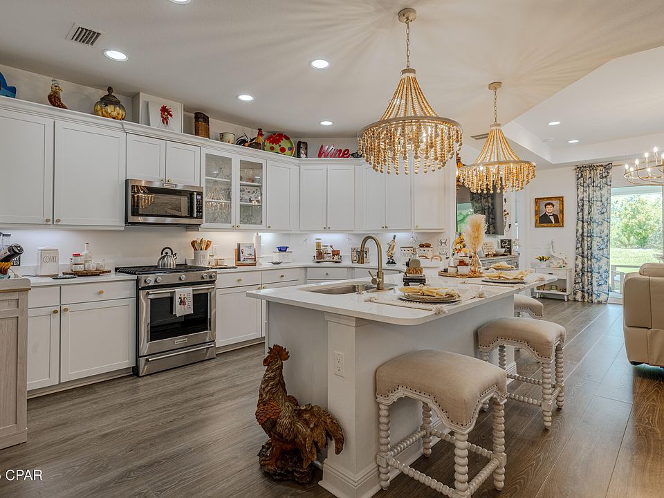 Motivated seller! Ask about FREE appraisal and NO lender fees (Total savings $1495)! EASY COASTAL LIVING IN PHASE 3 - LATITUDE AT WATERSOUND! A light-filled Florida-cottage home with the sought-after Barbuda Bay floor plan welcomes you with an open great room, raised/coffered ceilings, and a cook's kitchen featuring a gas range, generous island, pantry, and recessed lighting. The split layout creates a calm primary suite with a walk-in closet, double vanities, and a spacious shower, while a guest room and flexible den offer space for visitors, hobbies, or a home office. Quality touches include tile and luxury vinyl plank flooring, hurricane-rated impact windows and garage door, double-pane/storm protection, and tasteful window treatments, plus an attached garage and long driveway for easy coming and going.