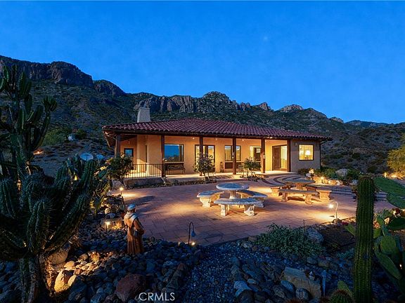 The structure is built into excavated rock, with 12-inch concrete retaining walls and 10-foot ceilings making it both elegant and durable. Large windows and open living spaces invite in natural light and uninterrupted views of rugged peaks, native oak and sycamore trees, and an abundance of local wildlife. At night, the starry skies here are nothing short of breathtaking.