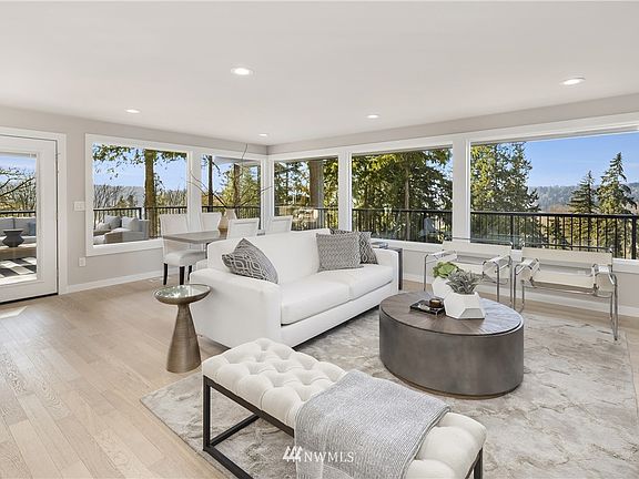 Situated on one acre, this contemporary home comes to life across 3,160 square feet of living space. Expansive windows frame classic PNW views. White countertops and warm wood cabinetry are paired with professional grade stainless steel appliances. Conversations flow outside seamlessly with a wraparound deck, where pristine views abound. 5-piece master suite oasis. Full kitchenette below. Enjoy privacy throughout the property. DDU providing studio space. 96 walk score to DT Bothell. Top-rated Northshore schools.