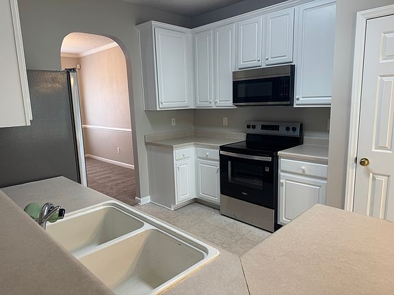 Eat in kitchen with freshly painted cabinets, plenty of cabinet & counter space, brand new stainless steel appliance package (waiting on delivery for microwave and dishwasher)
