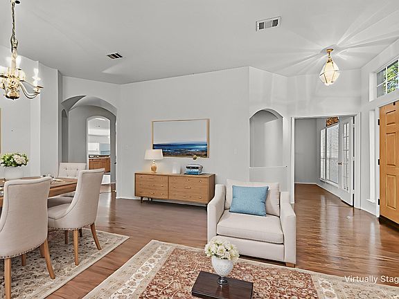 Welcome to 8401 Cedarcrest Lane in Stone Meadow. This three bedroom home has the option of having a fourth bedroom, or keep it as a dining room, or office. There are two large living areas, one is off the kitchen and has a fireplace. The perfect location for family entertainment. The front living area can function as a living room, a formal dining and living. You can lay it out to suit your furniture and needs. As a three bedroom or even a four bedroom, the secondary bedrooms are split from the primary. Primary is large with an ensuite bath. The kitchen is open to the breakfast room and living room with a wood burning fireplace where all three of these rooms have lots of natural light and views of the backyard. This is a rare find, a one owner home that has been loved and cared from since occupancy began.