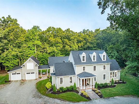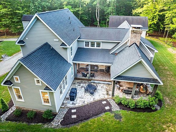 Nestled on over 9 private acres, this 5085 sq. ft. Custom Builder’s personal home blends timeless farmhouse charm with luxury craftsmanship. Showcasing exceptional millwork and rich walnut floors, every detail reflects elegance and care. The current owner has added over $150,000 in upgrades. The 1st floor Primary suite features a beautifully updated spa-like bath. Sunlight floods through soaring vaulted ceilings and abundant windows, illuminating the chef’s kitchen with its smart layout and premium finishes. Enjoy year-round entertaining in the covered outdoor living area with woodburning fireplace. With over 1500 sq. ft. of Heated & Cooled storage, an oversize garage with furnishable room above. Truly an architectural design that’s truly one-of-a-kind, this estate offers unmatched character Maintenance Free Exterior and comfort. 442 sq ft unfinished walk up attic. Whole House Generator.