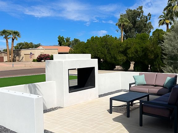 Step inside to discover a thoughtfully curated interior where no detail has been spared. Unique flooring, custom doors, accent walls, and high-end finishes set the tone throughout. The chef's kitchen is an entertainer's dream, complete with a massive 12-foot island, split True refrigerator/freezer, and a premium Thermador gas range and oven. Fully retractable 12' glass doors open the kitchen to the backyard, creating seamless indoor-outdoor flow perfect for enjoying Scottsdale's cool, sunny winters.