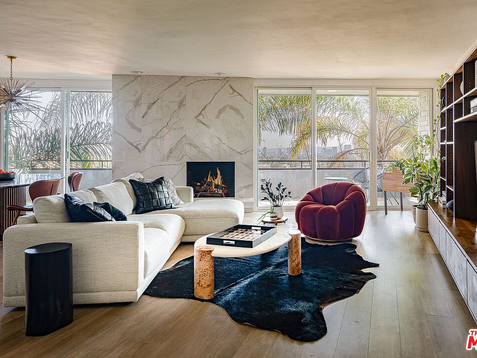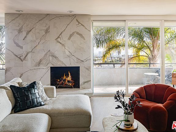 Single-story 2 bedroom 2 bath condo with panoramic views in prime West Hollywood. Newly renovated open floor plan living with floor to ceiling sliders, hardwood floors and large private balcony. Stone clad fireplace anchors the living room which floods with natural light. Custom kitchen has quartz countertops and stainless steel appliances. Large separate dining space flows effortlessly to the outdoors. Built in bar with a wine fridge doubles as the perfect coffee station. Incredible primary suite with custom walk-in closet system and resort like primary bath. Second bedroom is outfitted as an office with a convertible sleeper sofa to accommodate any guest. South facing unit in a Mid-Century architectural boutique building. 2 parking spaces included. Adjacent to the Residences at the Pendry, steps from the Sunset Strip with easy access to LA's best dining, entertainment and nightlife.