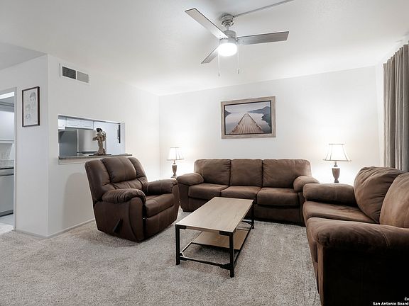 GROUND FLOOR UNIT! This beautifully updated 1-bedroom, 1-bathroom ground-floor condo in the Georgian Condos is move-in ready and located in the desirable Alamo Heights area. Featuring new plush wall-to-wall carpet with a premium pad, new appliances (including a refrigerator with an ice maker), and a kitchen with new tile flooring and granite countertops, this condo has been fully refreshed. The bathroom boasts a new walk-in shower with sliding glass doors, new tile flooring, a vanity, and updated fans. Wood blinds, new drapes, and ceiling fans in each room complete the modern touches. Onsite laundry room, library and pool are just steps from the front door. Conveniently located near stores and restaurants, this unit offers easy access from the complex entry.