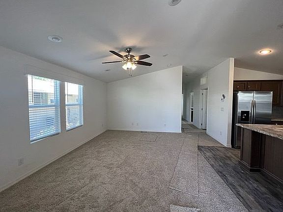 This home is in an age-qualified 55+ resort community. This popular Cavco 2 bed/2 bath model has so much to offer with an open floor plan which is great for entertaining guests since it allows sight lines to the dining room, living room and kitchen and offers a generous 1,377 sq. ft. The large kitchen comes with a gas range for the chef in the family as well as all-new stainless-steel appliances. This beautiful home has a den/office with stately French doors for added privacy. Extras: New architectural shingle roof, heat and A/C unit, and dual pane windows. Lovely wood plank style laminate in the bathrooms and kitchen/dining room with padded carpeting throughout the remainder of the home. Zero-scape landscaping is already set with timed irrigation. This home features the following amenities: Gas Stove, Open Floor Plan, Central Heat/AC, Energy Efficient Appliances, LED Lighting, Energy Efficient Windows, Master Bedroom ensuite, Master Walk-In Closet, Washer/Dryer Hookups for gas or electric, Vaulted Ceilings, Ceiling Fans, Skylight, Walk-In Shower, Finished Drywall. This is a must-see! Don't hesitate to get in touch with our Sales Agent for an appointment to view this home before it's gone!