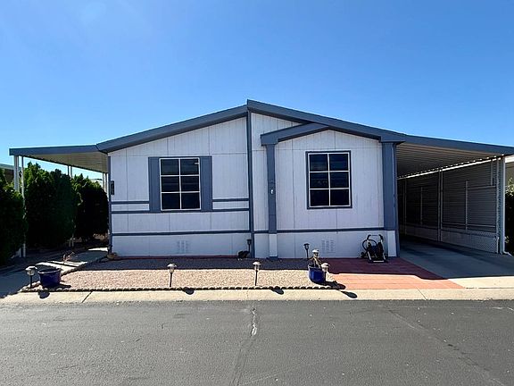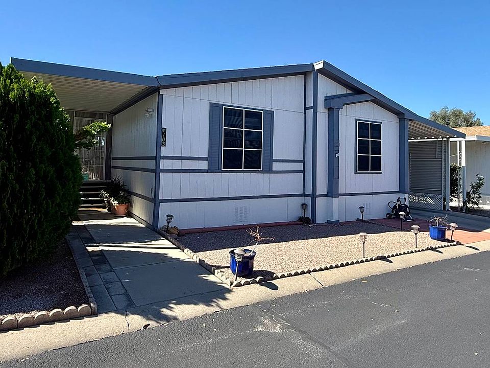 Welcome to this charming and meticulously maintained 3-bedroom, 2-bathroom home, perfectly situated in a welcoming 55+ community in Tucson, AZ. This spacious 28x58 home features a desirable split floor plan and an open-concept living and dining area, complete with soaring cathedral ceilings and a generous breakfast bar perfect for entertaining or casual dining. The kitchen boasts all stainless steel appliances, including a gas oven/range, microwave, dishwasher, and double-door refrigerator. A reverse osmosis system and water softener are also included for added comfort and convenience. Recent updates ensure peace of mind for years to come: a new roof (2021), gas pack HVAC system (2021), water heater (2022), complete home re-plumbing (2022), and a beautifully upgraded walk-in shower in the primary bathroom (2024). All dates provided are per seller. The home also features beautiful laminate flooring throughout and upgraded double-pane windows that enhance energy efficiency and comfort. Enjoy your morning coffee or evening relaxation in the screened-in porch, and take advantage of two storage sheds-one fully equipped with electricity and an additional refrigerator. Motion-sensor outdoor lighting on both sides of the home adds security and convenience. This home is truly move-in ready and offers both comfort and style in a community setting. Call today to schedule your private showing! Please note: Lot rents are subject to change based on current community rates at the time of closing.