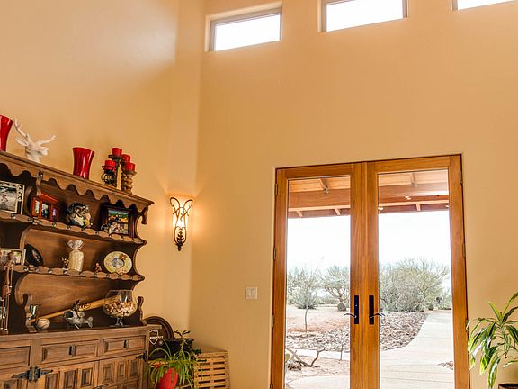 Welcome home to luxurious southwest living. Step into a towered foyer with exposed wood beams above and welcoming medallion in-lay travertine beneath your feet. The generous high ceiling great room with see through gas fire place, formal dining, and high windows capturing spectacular views, LED lit breakfast room coving, complementing fixtures. The large master suite with greeting morning mountain views, dual entry walk through closet, see through gas fireplace to master on suite, oversized three head shower, stone counter tops, and jetted garden tub. This split bedroom plan with shared on suite, and large closet for two distant bedrooms. Office with private entry and on suite can serve as guest quarters. The thoughtfully designed outdoor living oasis complements this fine home. Enjoy... cooling off in the solar heated salt water pool, relaxing in a custom designed variable level spa. Splendor in the view of the Rincon Mountain to the north and east, where the sun and moon first peak from behind the mountain to grace the Sonoran Desert Valley. Watch sports with guests on the big screen TV under the covered patio, as others enjoy the pool, warming up at night to the outdoor fireplace under the patio or two ring gas pit under the starry sky. Perfect for entertaining guest into the night or just relaxing beneath the stars. Nestled within the renowned Coyote Creek gated equestrian community. This home has a lot to offer: " Eight foot double door entry " Wood accented Anderson windows throughout o Some with crank out feature " Zoned AC " Two electric water heaters " Matching GE Monogram stainless steel appliance " Built in 48" Microwave " Granite kitchen counter tops " Large master suite with o spectacular mountain views o rear patio access o see through gas fire place to master on suite " Double vanity master on suite with o Stone counter tops o Oversized master shower with three shower heads o Jetted jacuzzi o Extra large walk through double entry closet with built in cabinetry and shelving " Office or guest room with o Personal ingress egress o Full on suite " Large laundry with o Pre-wash sink o Granite counter tops o Knotty wood cabinetry o Abundance of storage " All Bedrooms newly carpeted in 2018 " Shared jack & jill bathroom between bedrooms 2 & 3 with o Stone counter top o Separate sinks o Large spacious walk in closets " Roof recently recoated with 3 year warranty " Front yard low voltage lighting along walkway with dusk sensing photocell " Back yard oasis to live for o 21,000 gallon salt water pebble tech pool with § Upper deck for little ones § Self-cleaning jets § LED Intellibrite color changing lighting controlled through ScreenLogic app § Control system is internet and app based, fully automated. For example, spa can be turned on before leaving work and ready to go when you come home. § Jetted spa with drop down level for additional comfort § Water feature § Equipment is Pentair with pre-filter cleaner § New pool filters installed September 2019 § Equipment serviced and cleaned January 2020 § Surrounded by flagstone and acrylic decking and artificial grass with pathway lighting " Irrigation in the rear/side yards are controlled by Rachio irrigation valve controller which is also internet and app controlled " Wood burning patio kiva " Lower level is a double-ring gas fire-pit with fire-glass " Plans for additional lower tier for barbecuing (custom gate available with home) " Front yard is a single valve controlled Rainbird timer controlled. " Exposed aggregate driveway and entry walkway " Oversized three car garage with built in shelving and ample space