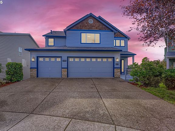 Welcome to this beautifully maintained 5-bedroom, 3.5 bath home with a large 3 car garage. This home offers comfort, functionality, and stunning views. The thoughtful layout includes four spacious bedrooms upstairs (or 3 bedrooms & a bonus), a private office on the main level, and a bedroom with full bath on the lower level—perfect for multigenerational living or guest quarters. Each bedroom features oversized closets, providing abundant storage throughout.The luxurious owner's suite is a true retreat with a vaulted ceiling, cozy gas fireplace, and spa-inspired bathroom, complete with a soaking tub and separate shower. High ceilings throughout the home enhance the open, airy feel.The kitchen is designed for both everyday living and entertaining, featuring a gas cooktop with electric oven and seamless flow into the dining and living areas. Enjoy outdoor living at its finest with two expansive decks connected by a spiral staircase—ideal for gatherings, barbecues, or simply taking in the picturesque views of a nearby christmas tree lot and the mountain range beyond. The lower level family room is generously sized, offering flexible space for media, recreation, or extended family. Ziply Fiber provides 1G up/down for all your connectivity needs. Recent updates include a new 50-year roof with solar panels (installed 2024 with transferrable warranty), new decking & handrails on upper deck, and new front porch decking. Pride of ownership is evident in every detail of this home.